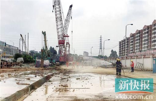 新快報記者于9時30分許趕到現場時,仍能聞到輕微的煤氣味,廣州燃氣集團的搶修人員正在事發工地內進行搶修工作。記者在場看到,出現煤氣泄漏的位置被鑿出一個約半米寬、1米深的洞,兩名消防官兵不斷往洞內噴灑清水。