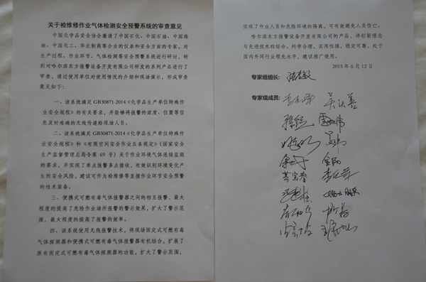 在剛剛過去的安全生產月里,也是GB30871-2014《化學品生產單位特殊作業(yè)安全規(guī)程》實施的第一個月,由中國化學品安全協(xié)會主辦,石家莊煉油廠、哈爾濱東方報警設備開發(fā)有限公司協(xié)辦的《關于檢維修作業(yè)氣體檢測安全預警系統(tǒng)評審會》的會議在石家莊煉油廠順利舉行,在評審會上哈爾濱東方報警設備開發(fā)有限公司針對有限空間、動火現(xiàn)場的現(xiàn)狀做了系統(tǒng)的分析,并針對目前存在的隱患提供了系統(tǒng)的解決方案,徹底的解決了受限空間、動火現(xiàn)場的檢測空擋的安全隱患,得到了到場的中石化、中石油、中海油、中國化工、華北制藥等安全行業(yè)專家的高度認可,在裝置現(xiàn)場應用的產品讓專家親身感受到了此系統(tǒng)對現(xiàn)場作業(yè)人員的安全保障,同時提升了安全績效。