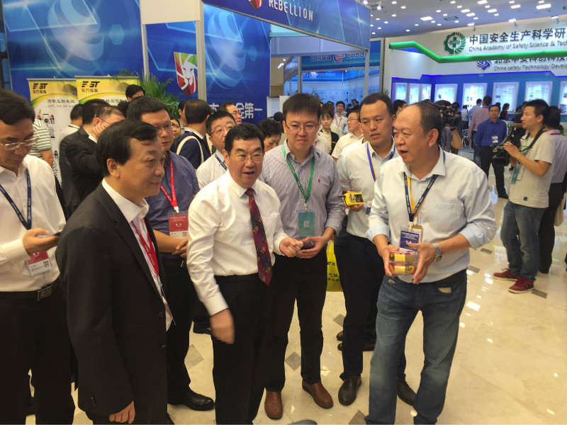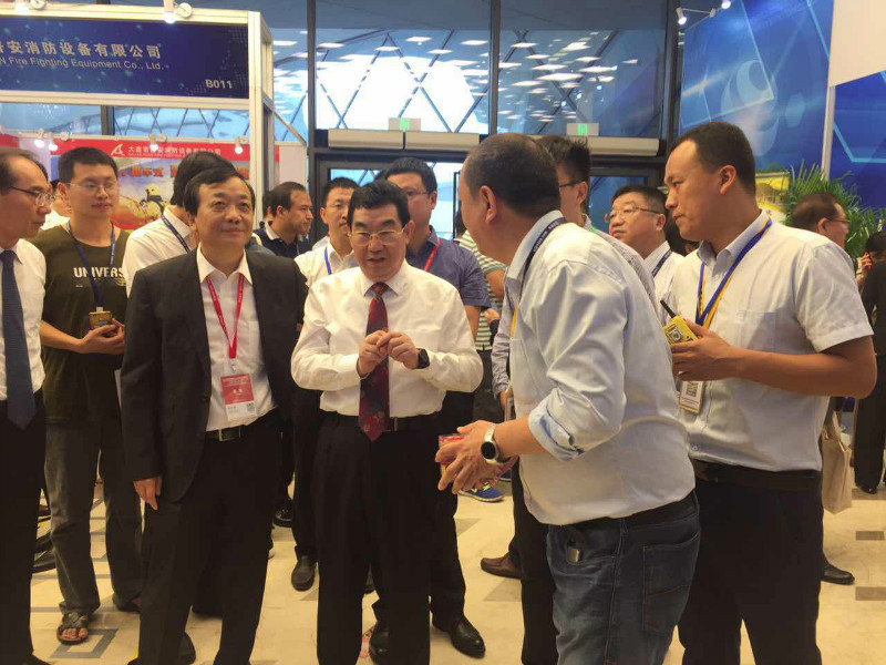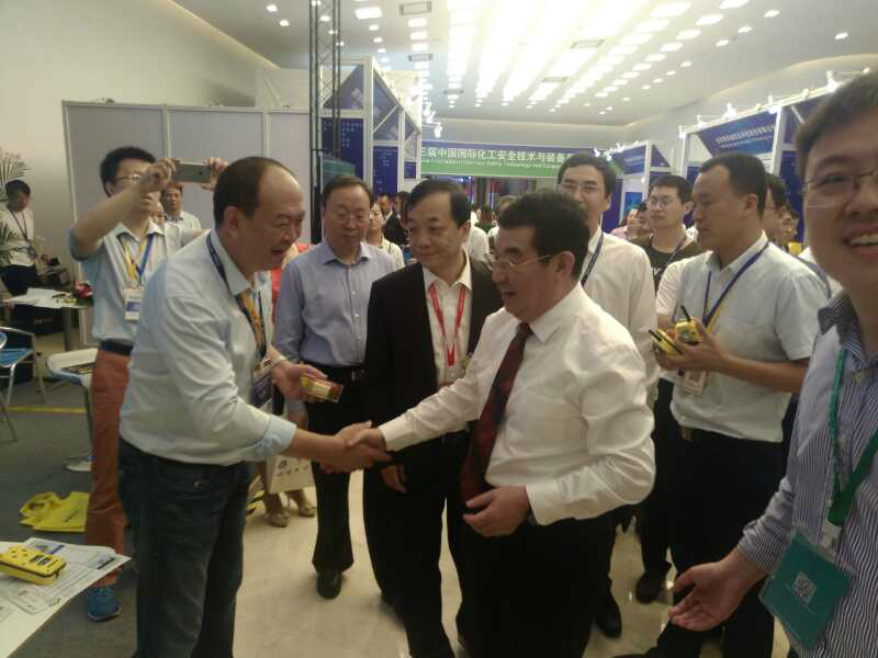 國家安全生產監督管理總局總工程師王浩水,中國化學品安全協會秘書長路念明 蒞臨展位于東方報警董事長李宣南進行深入交流