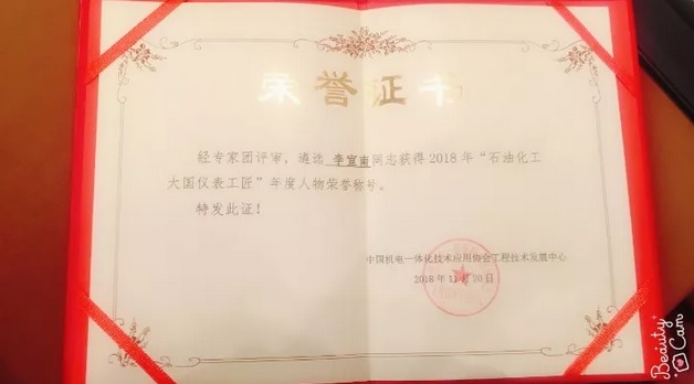 2018 年 11 月 21 日~24日在蘇州市召開“第三屆石油和化工儀控技術(shù)大會暨化工儀表專家組第一屆第二次全體擴(kuò)大會議”。本次會議由中國機電一體化技術(shù)應(yīng)用協(xié)會主辦單位,哈爾濱東方報警設(shè)備開發(fā)有限公司榮譽受邀參加本次會議。董事長李宣南先生被主辦單位評選為“大國儀表工匠”稱號!