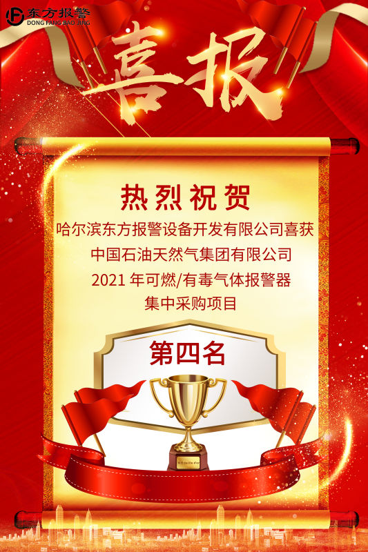 喜報|熱烈祝賀東方報警喜獲中石油2021可燃/有毒氣體報警器集中采購項目第四名