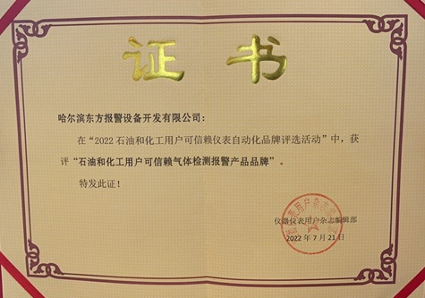 哈爾濱東方報(bào)警設(shè)備開發(fā)有限公司受邀參加本次會(huì)議并獲得【石油和化工用戶可信賴氣體檢測報(bào)警器產(chǎn)品品牌】嘉獎(jiǎng)!