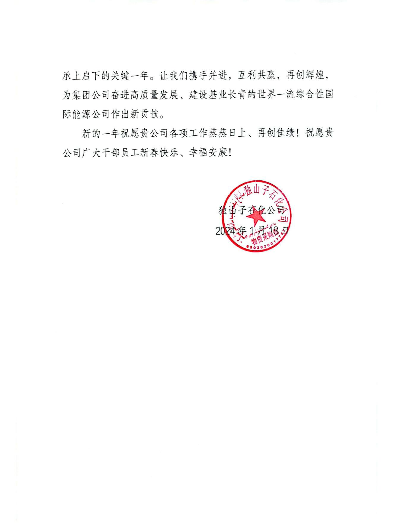 再次感謝中國石油天然氣股份有限公司獨山子石化分公司對我司的支持和信任,我們將一如既往地為您提供優(yōu)質(zhì)的產(chǎn)品和服務(wù),我們共同努力、攜手并進(jìn),互利共贏,再創(chuàng)輝煌!
