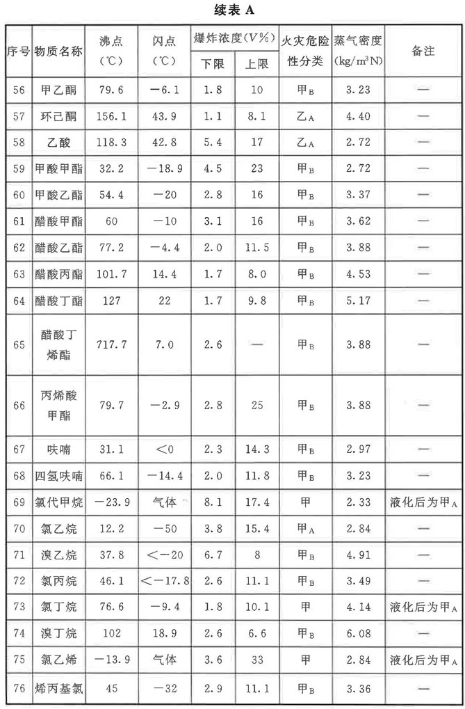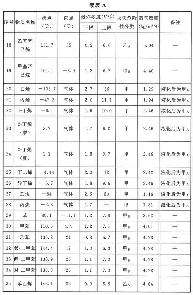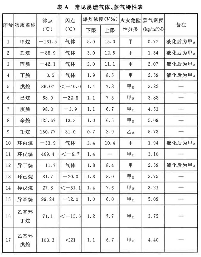 表A中的數值來源以《化學易燃品參考資料》(北京消防研究所譯自美國防火手冊)為主,并與《壓力容器中化學介質毒性危害和爆炸危險程度分類標準》HG/T 20660-2017、《石油化工工藝計算圖表》、《可燃氣體檢測報警器》JJG 693-2011、《爆炸危險環境電力裝置設計規范》GB 50058-2014、《化工過程安全理論與應用》(第二版)進行了對照,僅調整了個別欄目的數值。