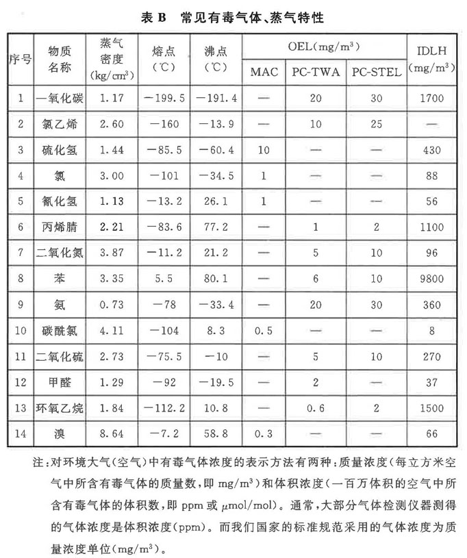表B中的數值來源于《化驗員實用手冊》《石油化工工藝計算圖表》《高毒物品作業職業病危害防護實用指南》及現行國家職業衛生標準《工作場所有害因素職業接觸限值 第1部分:化學有害因素》、《呼吸防護用品的選擇、使用與維護》GB/T18664-2002。