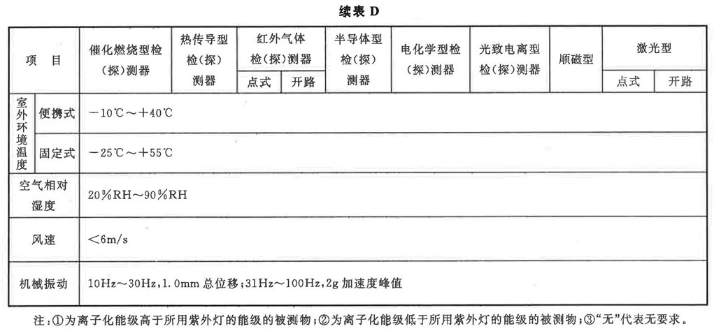 表D數值來源于歐洲標準《可燃氣體或氧氣檢測與測量儀器的選用、安裝、使用和維護指南》EN 60079-29-2-2007。