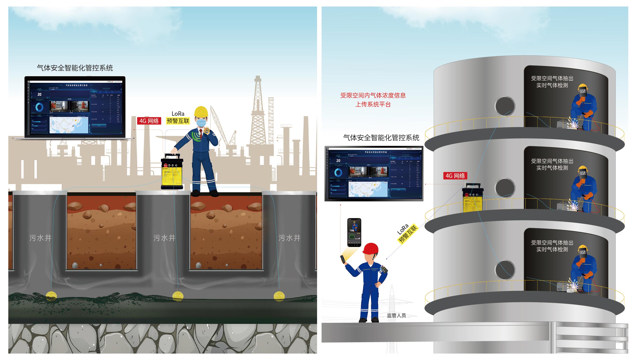 3、氣體濃度及預(yù)警信息4G上傳,彌補臨時作業(yè)氣體信息平臺監(jiān)管缺失;