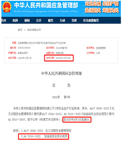 2023年4月1日,《加油站作業(yè)安全規(guī)范》(AQ3010-2022)將代替AQ3010-2007并正式實施。相較于傳統(tǒng)內(nèi)容,新規(guī)范結(jié)合了手機支付廣泛普及的時代特點,允許在設(shè)置可燃氣體聲光報警裝置的情況下進行手機支付。